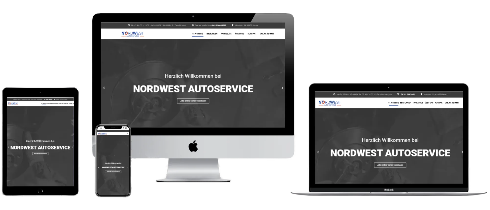 NordWest Autoservice wünschte sich eine Website, die sowohl die Werkstattleistungen als auch den Gebrauchtwagenverkauf klar abbildet. Wir entwickelten eine übersichtliche Serviceübersicht, kombinierten diese mit einem Fahrzeugkatalog und fügten praktische Kontakt‑ und Online-Terminmöglichkeiten hinzu. So wirkt der Auftritt kompetent und serviceorientiert.